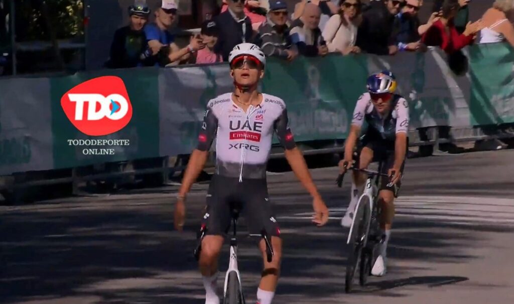 Los primeros 70 kilómetros de la competencia se desarrollaron en terreno llano, con perfil favorable para velocistas. A partir de ahí, el trazado de casi 200 kilómetros en total se convirtió en una sucesión de ascensos y descensos donde el mexicano mostró su mejor versión. La fuga inicial llegó a contar con hasta cinco minutos de ventaja tras las primeras tres subidas, pero el grupo principal, encabezado por el UAE Team Emirates —que con este triunfo alcanzó 88 victorias en la temporada y amplió su récord histórico—, redujo la brecha rumbo al primer paso por el exigente puerto de San Luca.