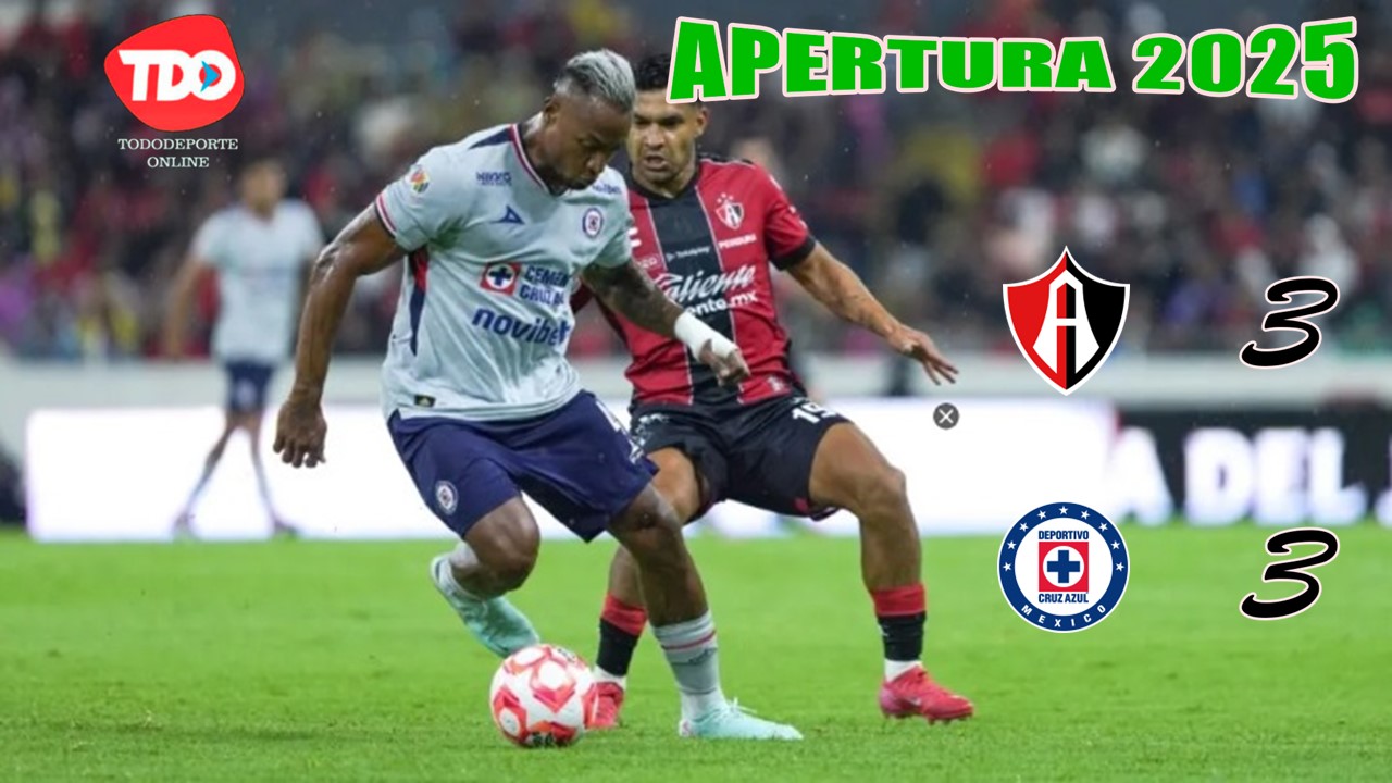 Guadalajara, Jalisco.- Atlas y Cruz Azul protagonizaron un vibrante empate 3-3 en el estadio Jalisco, en un partido lleno de emociones, goles y errores defensivos dentro de la jornada 2 del Apertura 2025.