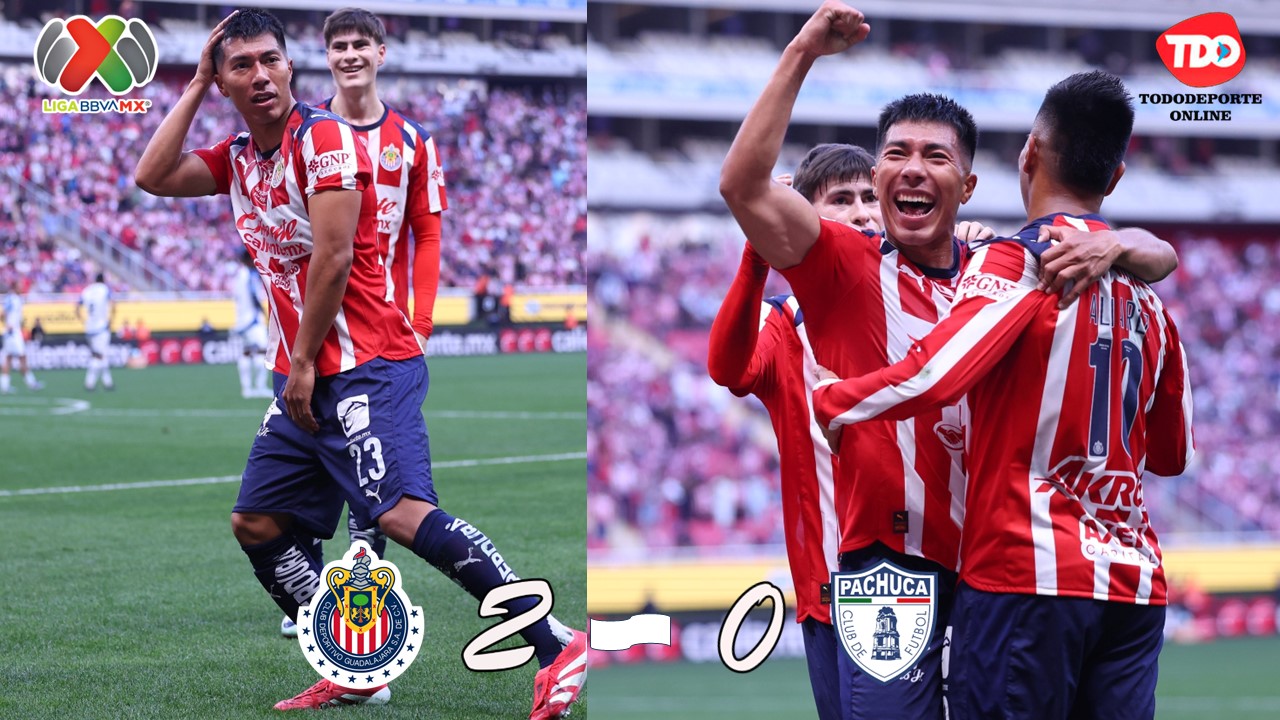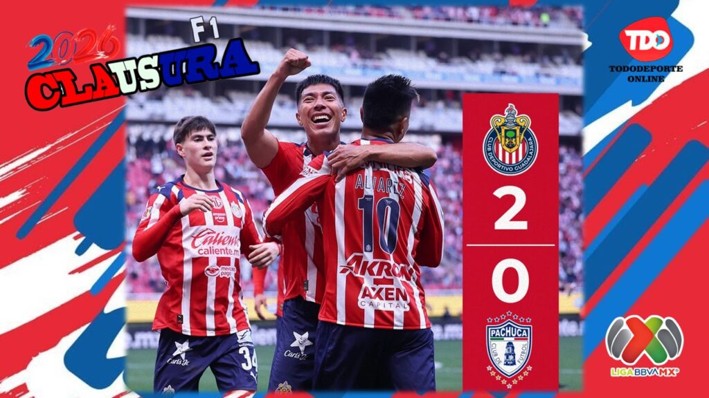 Guadalajara, Jalisco.- Con una muy buena exhibición de futbol y contundencia, las Chivas doblegaron 2-0 al Pachuca al continuar la fecha 1 del Clausura 2026 de la Liga MX.