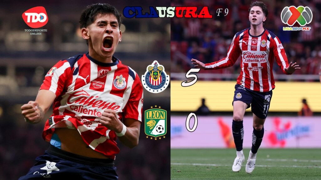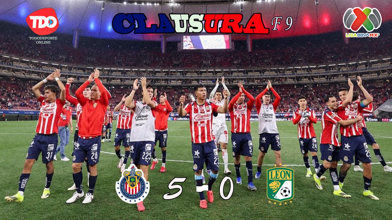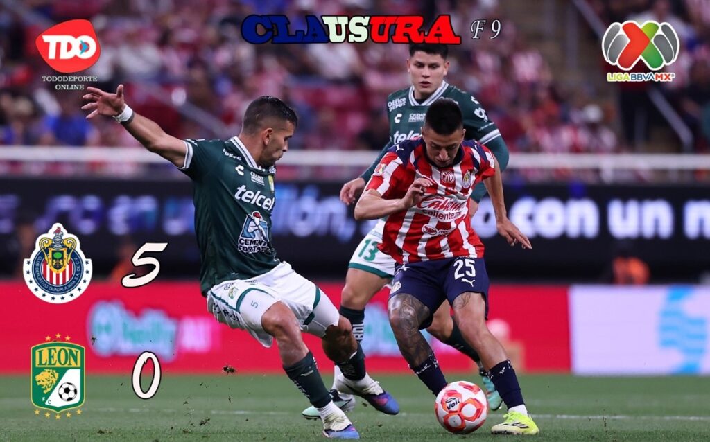 Guadalajara, Jalisco.- Las Chivas Rayadas del Guadalajara firmaron una actuación contundente tras golear 5-0 al León en el estadio Akron, en un partido pendiente a la fecha 9 del Torneo de Clausura 2026 de la Liga MX.