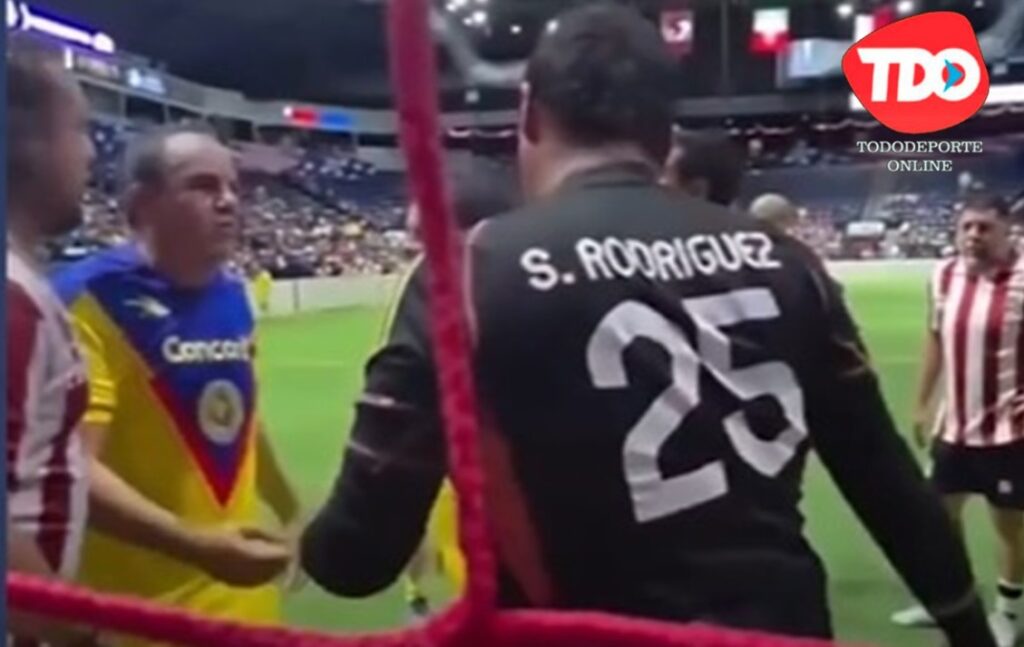 El partido, que reunió a figuras históricas de ambos equipos, se vio interrumpido luego de una jugada que terminó con la cachetada del “Cuau” sobre el exguardameta del Rebaño.con la parte