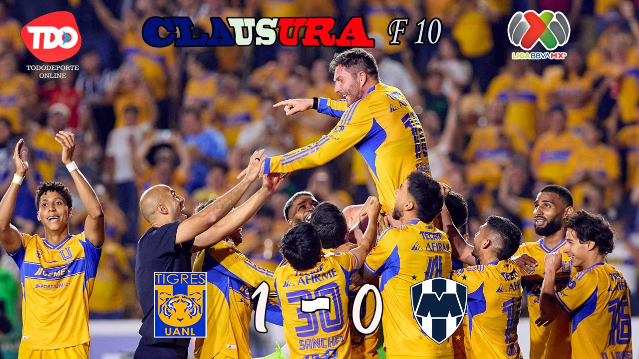 San Nicolás, NL.- Los Tigres de la UANL pintaron de amarillo el Clásico Regio del Clausura 2026 tras vencer 1-0 a los Rayados del Monterrey con un agónico gol del francés André-Pierre Gignac, en un partido correspondiente a la fecha diez.