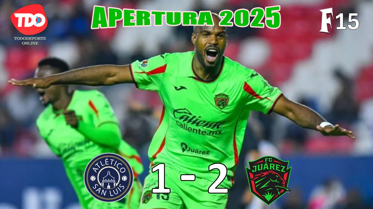 San Luis Potosí, SLP.- El FC Juárez consiguió una victoria importante en el estadio Alfonso Lastras al superar 2-1 al Atlético de San Luis, en un encuentro que se definió en los últimos instantes del tiempo añadido.