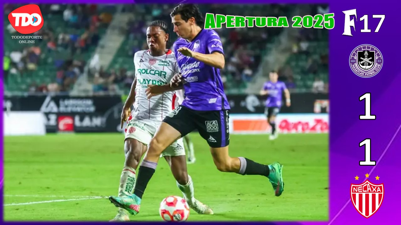 Mazatlán, Sinaloa.- El Mazatlán FC y los Rayos del Necaxa despidieron su actuación del Torneo de Apertura 2025 de la Liga MX tras saldar su entrevista en el Encanto con un empate a uno al comenzar la última fecha del rol regular.