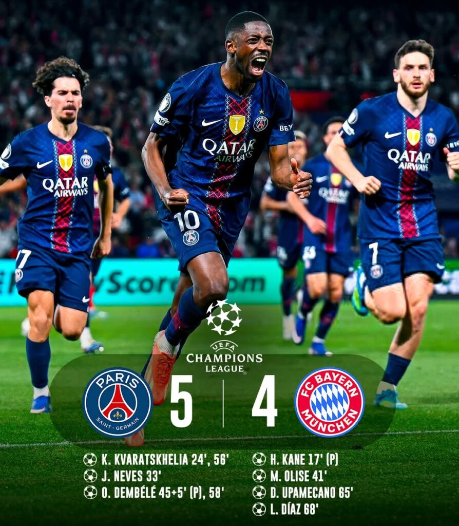París, Francia.- El Paris Saint-Germain se impuso 5-4 al Bayern Munich en un partido de ida espectacular que tuvo de todo, dejando abierta esta semifinal de la Champion League 2026 para la vuelta.