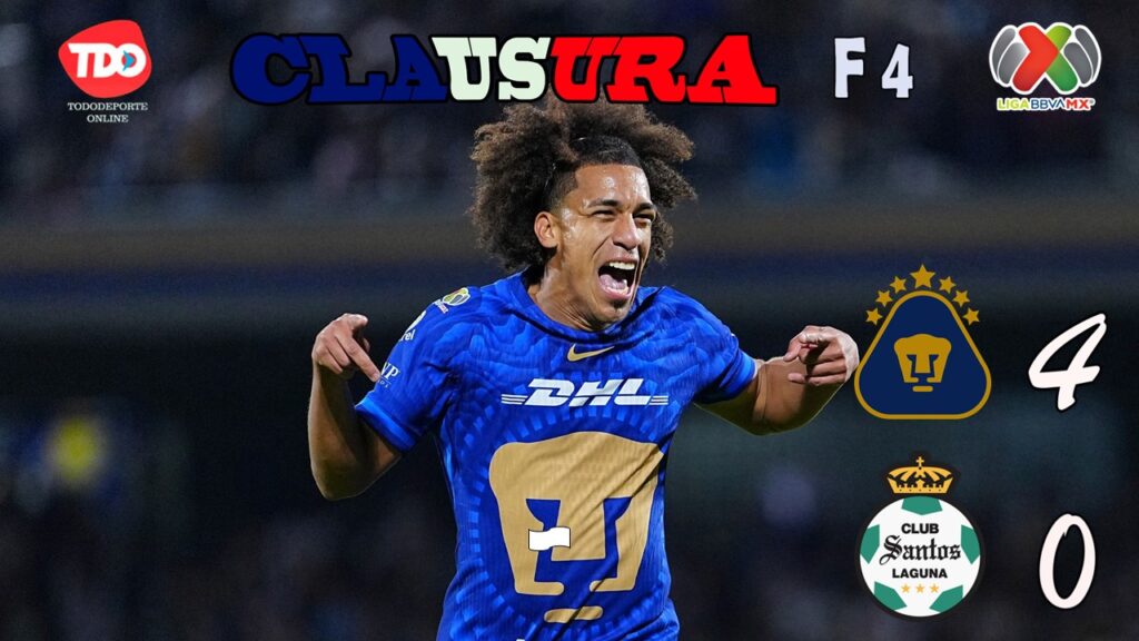 El cuarto gol llegó a los 39′, cuando Alan Medina remató desde fuera del área, con la izquierda, y anotó el gol que selló la goleada. Santos no encontró respuestas, y aunque tuvo algunas llegadas, como la de Efraín Orona, quien remató alto desde dentro del área, la efectividad de Pumas fue evidente.
