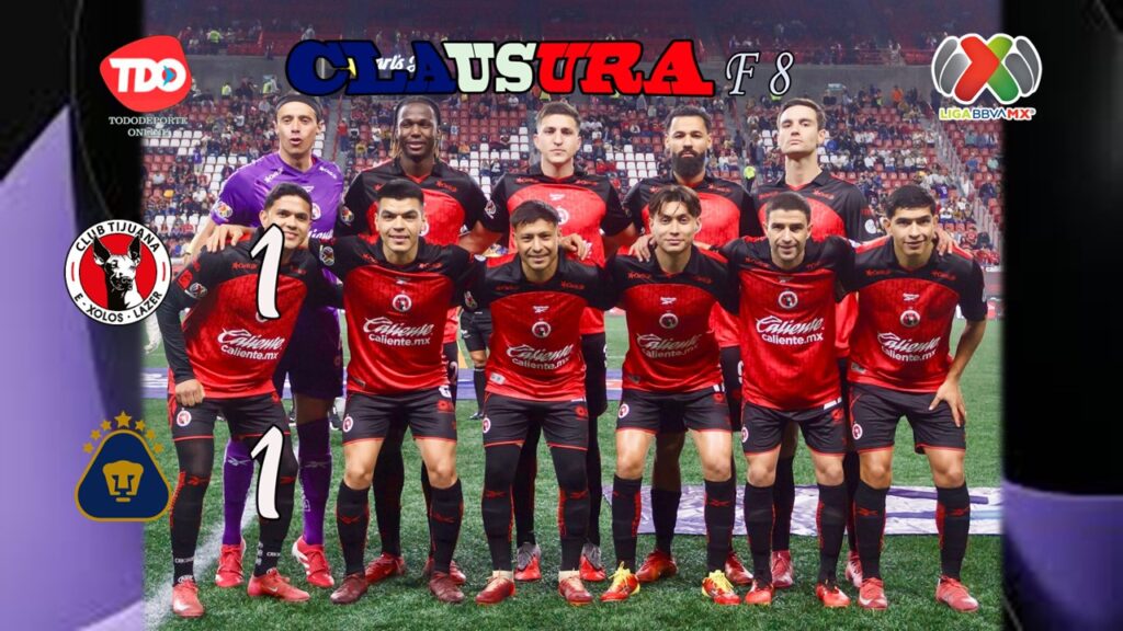 Tijuana, BC.- Los Pumas no dejan de pelear por la cima de la tabla general del torneo, luego de empatar 1-1 con Tijuana en el estadio Caliente, en duelo correspondiente a la jornada 8 del Clausura 2026 de la Liga MX.