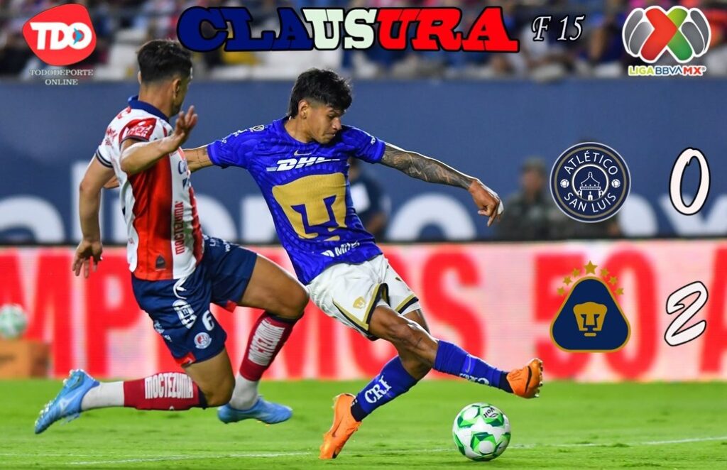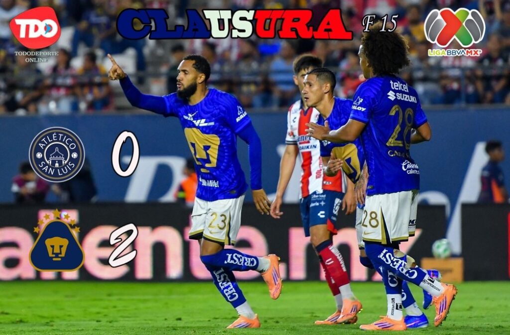 San Luis Potosí, SLP.- Los Pumas treparon momentáneamente al subliderato del Torneo de Clausura 2026 tras doblegar a domicilio al Atlético de San Luis por 2-0, al iniciar la fecha 15.