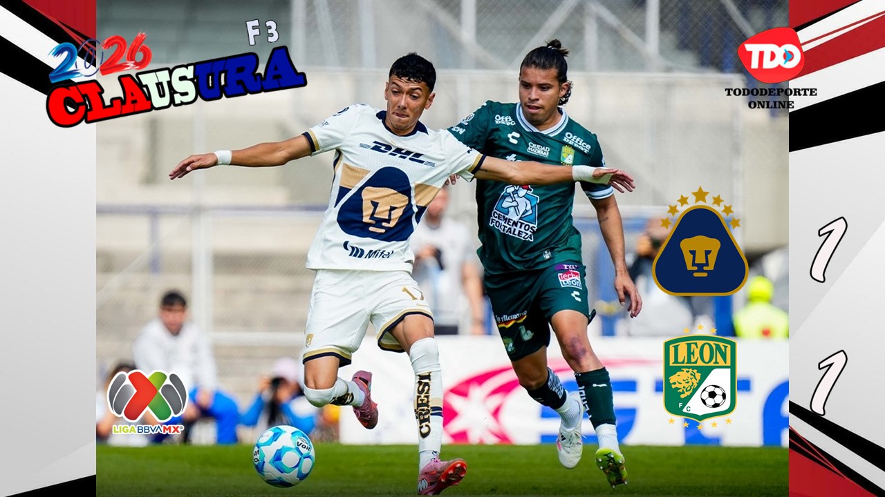 Con el empate, Pumas alcanzó cinco puntos y se ubicó en la sexta posición de la tabla general, mientras que León descendió al noveno lugar con cuatro unidades.