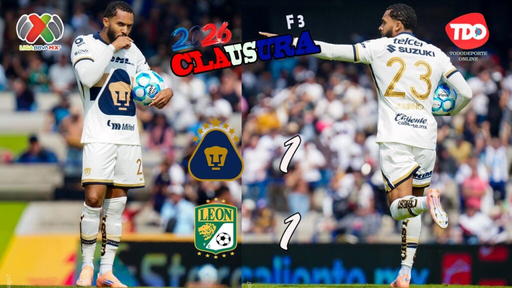 CDMX.- Los Pumas de la UNAM y los esmeraldas de León saldaron su entrevista con un discreto empate a uno en el estadio Olímpico Universitario dentro de la tercera jornada del Torneo de Clausura 2026 de la Liga MX.