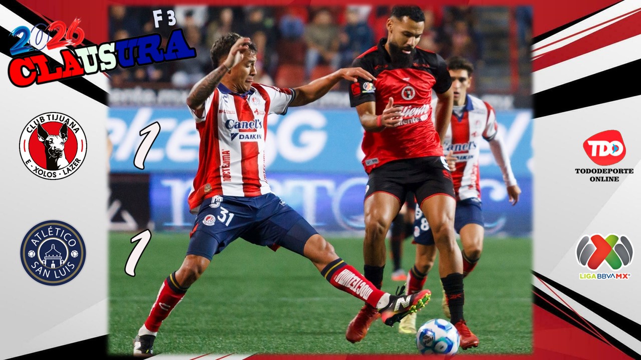 Tijuana, BC.- Atlético de San Luis sacó de la bolsa un valioso empate a uno ante los Xolos en el estadio Caliente al continuar la fecha 3 del Torneo de Clausura 2026.