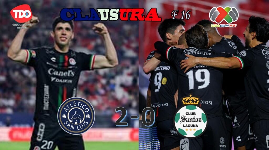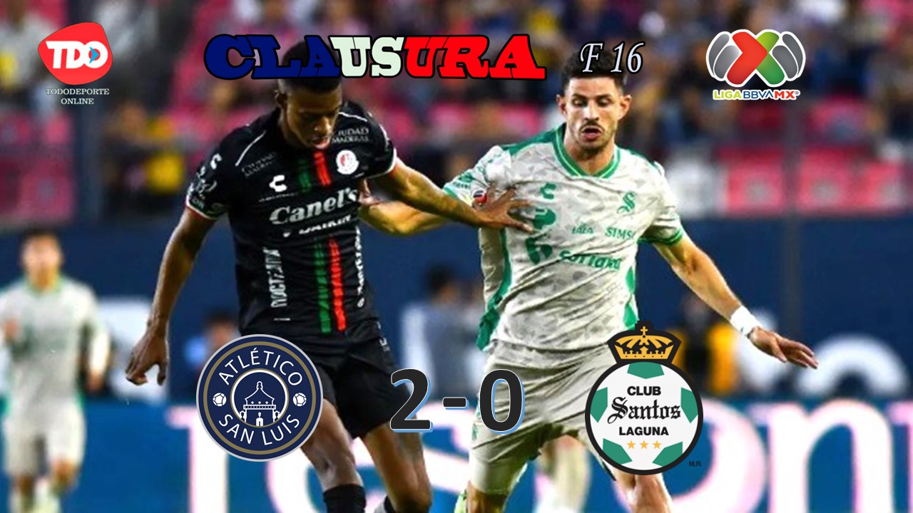 San Luis Potosí, SLP.- En duelo de eliminados, Santos Laguna cayó la noche de este miércoles en su visita al Atlético de San Luis por 2-0, resultado que confirma el mal momento en que se encuentra el cuadro lagunero, que volverá a terminar el torneo en último lugar.