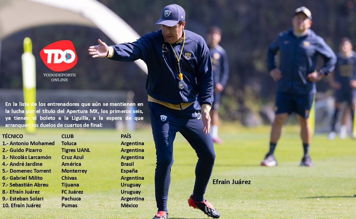 CDMX.- La disputa por el título del Apertura 2025 de la Liga MX presenta un panorama que se viene haciendo una costumbre, en cuanto a dirección técnica: de los diez clubes que siguen en competencia, solo uno está bajo el mando de un entrenador mexicano. La salida de Jaime Lozano del Pachuca antes del Play In redujo aún más la presencia nacional en los banquillos y dejó a Efraín Juárez, técnico de Pumas, como el único representante en esta fase del torneo.
