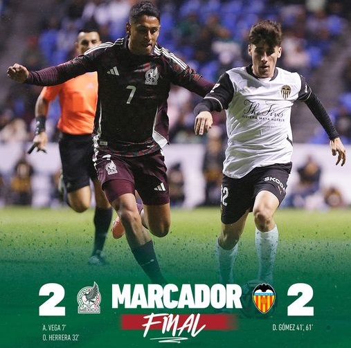 El partido concluyó sin más goles. Marcador final México 2-2 Valencia. El siguiente duelo de la Selección Tricolor será este martes 15 de octubre contra Estados Unidos en Guadalajara.
